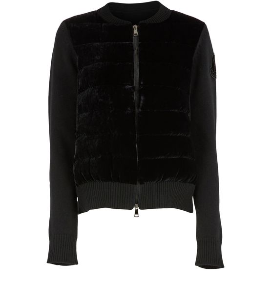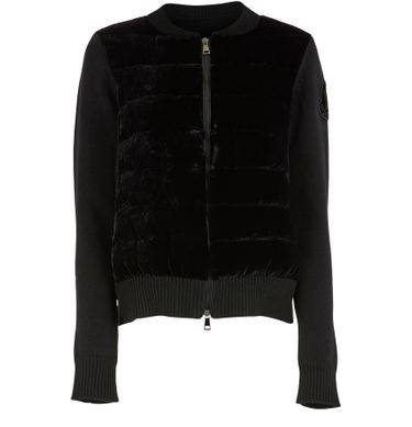 This elegant, refined wool and cashmere sweater by Moncler demonstrates the brand's artisanal expertise in creating comfortable pieces full of femininity. The model is zippered on the front for a modern look and displays horizontal quilting, contrasting sleeves, and ribbing at the collar, cuffs, and hem. A logo insert on the sleeve adds a final signature touch to the sweater.