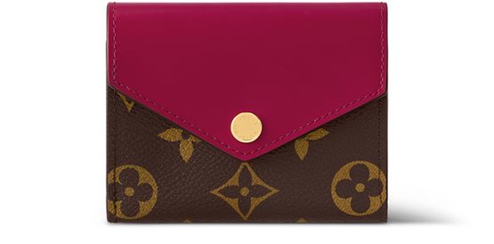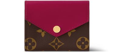 The Zoé wallet is the perfect mini companion: small enough to fit into even a tiny bag or clutch, yet spacious enough to hold coins, notes and credit cards. Its appeal is enhanced by its stylish combination of Monogram canvas and colored leather, finished off with a gold-tone Louis Vuitton press-stud.