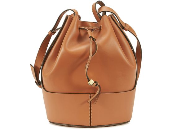A signature piece of the famed Spanish fashion house, Loewe, the Balloon handbag features a timeless, practical shape. Made from two types of leather--strong calf leather on the outside and napa calf leather on the inside--its sturdiness is accentuated by a rigid bottom. The design of this handbag required great expertise, with the bottom being carefully structured from only three pieces. The closure features a...