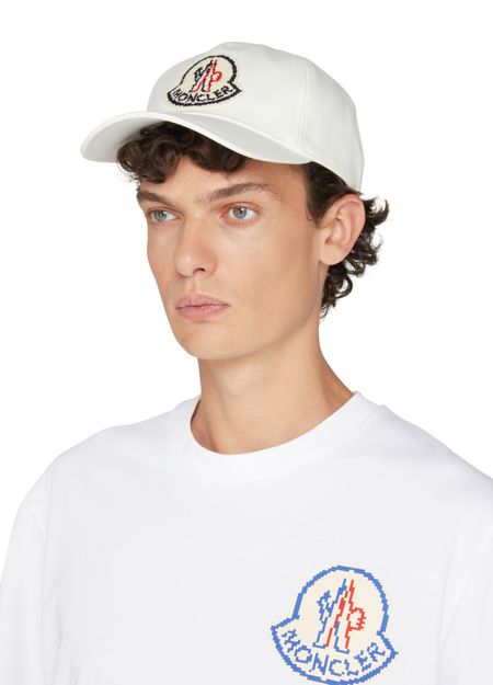 Moncler's Baseball cap showcases a six-panel design with a round crown, offering a classic silhouette. Its curved visor provides sun protection, while the visible stitching adds a refined touch. The iconic logo at the front signifies quality and style, making it a must-have accessory for any casual outfit.