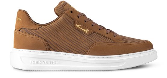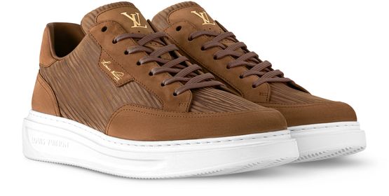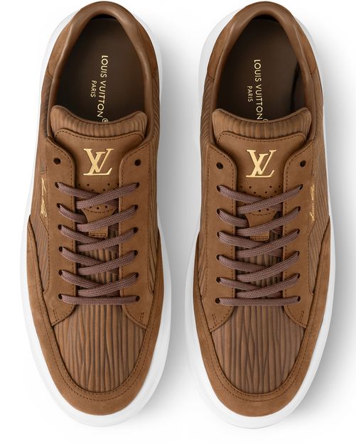 The Beverly Hills sneaker is revisited in Epi XL nubuck calf leather, notable for its scaled-up interpretation of the distinctive Epi grain. This style is combining an elegant upper with a sneaker sole which makes it particularly comfortable to wear. It is embossed in gold with Louis Vuitton signatures, including the script signature on the side.