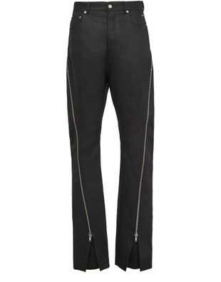 Rick Owens's Bolan banana pants boast a unique silhouette with ankle length and a stylishly relaxed fit. Featuring belt loops and visible stitching, they offer both functionality and flair. The buttoned and concealed zipper closure ensures a polished look, while side pockets add practicality to these effortlessly cool casual pants.