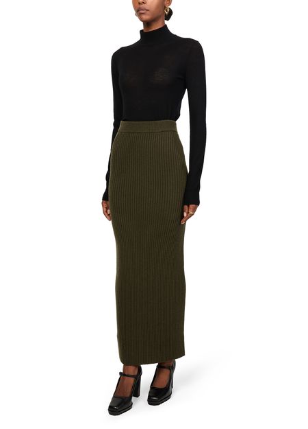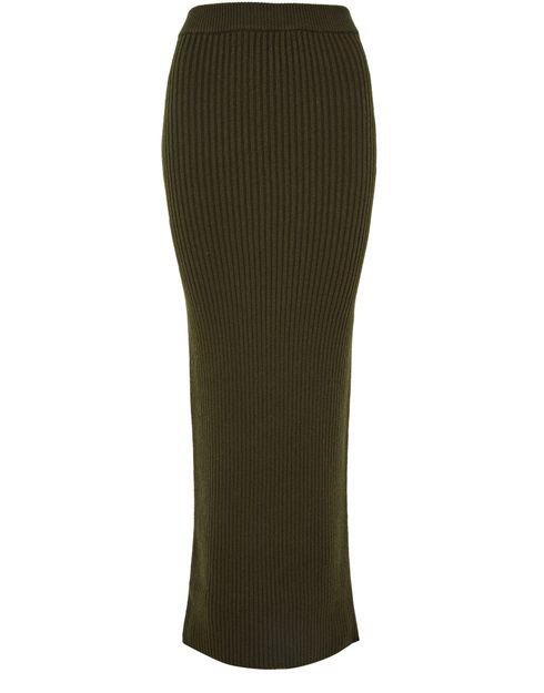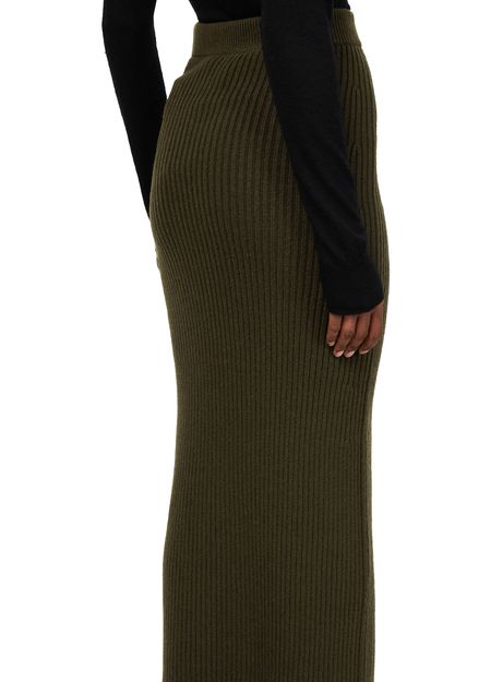 Reveal Max Mara's ribbed maxi skirt, a masterpiece of elegance with its elasticated waist and straight silhouette. Crafted for versatility, this skirt transitions effortlessly from day to night, offering a chic look for any occasion. The ribbed texture adds a touch of sophistication to your wardrobe.