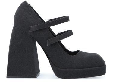 Nodaleto's Bulla Babies heels seem almost sculpted. The imposing heel, platform and square toe create a solid form softened by the straps.