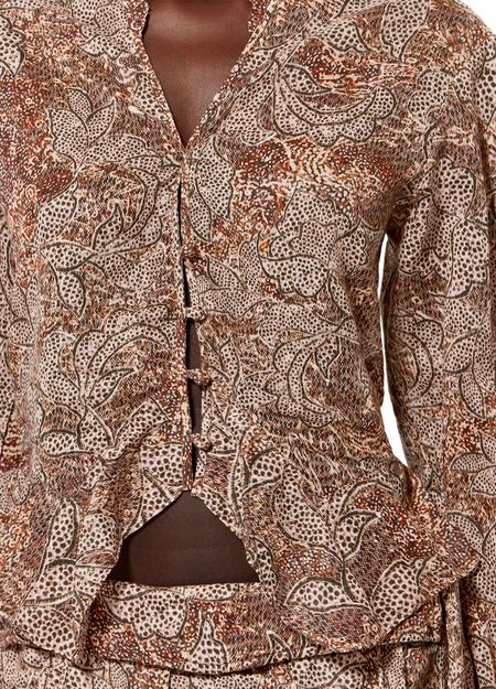 Reveal Isabel Marant's Celeny printed blouse, featuring a refined V-neck and long sleeves for a graceful silhouette. The all-over print and front buttoned closure add a modern twist, making this blouse a versatile top that transitions effortlessly from day to evening looks.