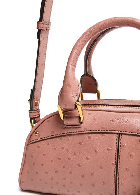 Reveal Chloe's bowling handbag, crafted from grained leather and adorned with gold-tone charms suspended by a delicate chain. The double handles and adjustable, detachable thin strap offer versatile carrying options, while the front logo and gold finish add a refined touch to this modern shoulder and crossbody bag.