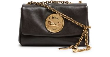 Introducing Chloe's Heritage shoulder bag, a masterpiece crafted from smooth leather. This crossbody bag features an oversized horse medallion and gold-tone charms that dangle elegantly from a small chain. With visible topstitching, a front logo, and a magnetic closure, it's a stylish and functional choice for any occasion.