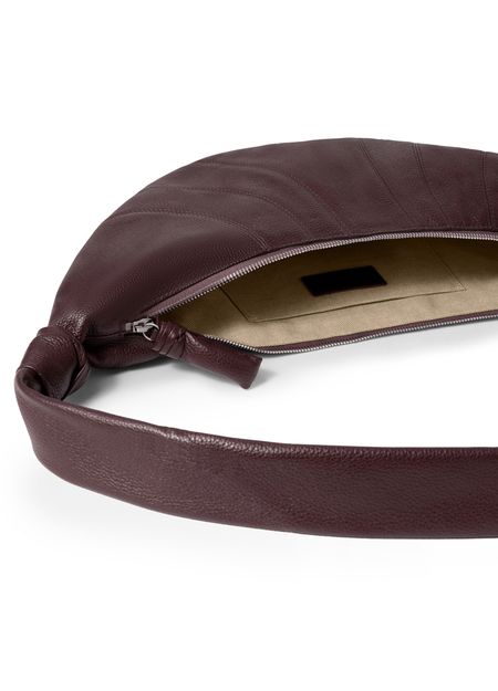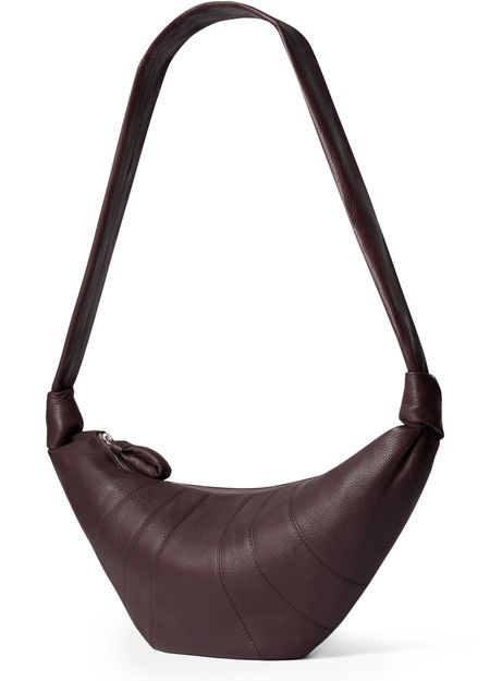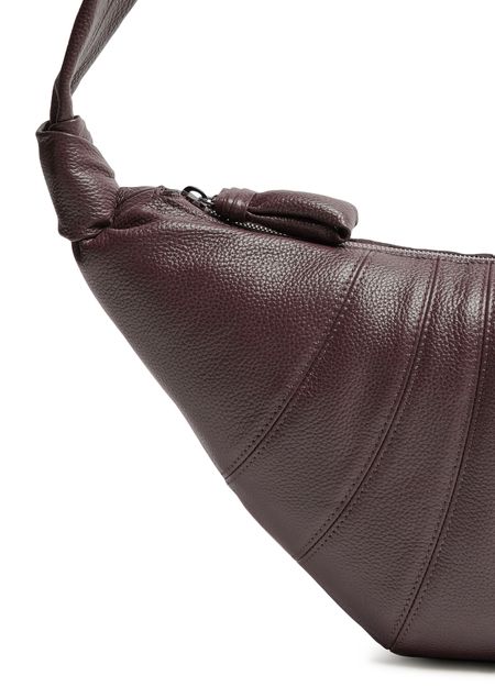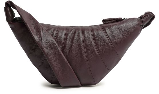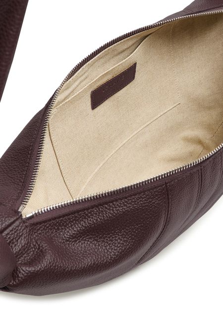 Reveal Lemaire's grained leather shoulder bag, crafted with a single handle and padded texture for a refined silhouette. Visible stitching and a secure zipper closure highlight the meticulous attention to detail, making this piece a modern essential for any wardrobe.