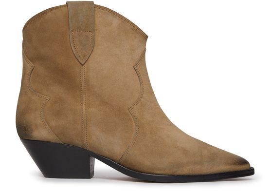 Isabel Marant's Dewina boots are crafted with a warm fabric that provides comfort during colder days. The leather outer sole offers durability and traction. Featuring visible stitching for a stylish touch, these boots have a pointed toe for a sleek look. Perfect for adding a touch of sophistication to any outfit.
