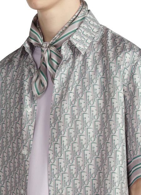 • Description : All-over Dior Oblique print, collar: 5.5 cm / 2 inches, concealed button placket, mother-of-pearl buttons with 'DIOR' signature, short sleeves, straight hem with side vents.