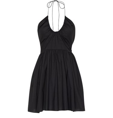 Description : mini dress, sleeveless, v-neck, pleated details.