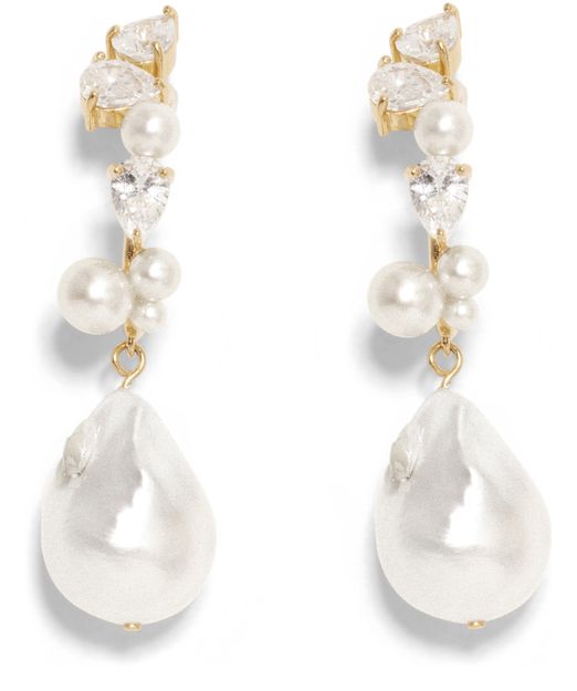 Reveal CompletedWorks's ear climbers, an exquisite pair adorned with delicate bead and pearl details. These gold-finished earrings are the epitome of modern elegance, perfect for accentuating any ensemble with a touch of sophisticated charm.