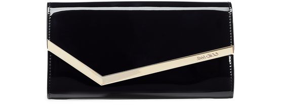 Jimmy Choo's Emmie patent leather clutch is a versatile and stylish accessory perfect for any occasion. Made with high-quality patent leather, this clutch bag features a flap closure for easy access to your essentials. It can be hand carried, worn on the shoulder, or across the body, providing multiple ways to wear and elevate your outfit.