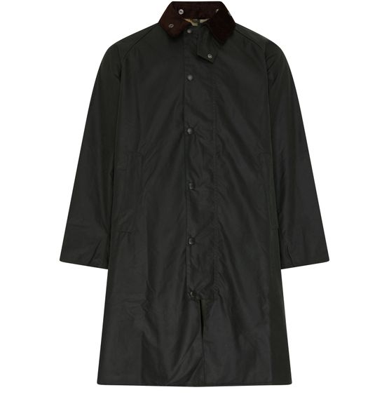 Barbour's Exmoor wax coat combines style and practicality with its short, long-sleeved design and buttoned concealed zipper closure. Featuring side welt pockets for convenience, it showcases an appliquéd logo and a logo at the back label, making it the ideal raincoat for those who appreciate timeless elegance and functionality.
