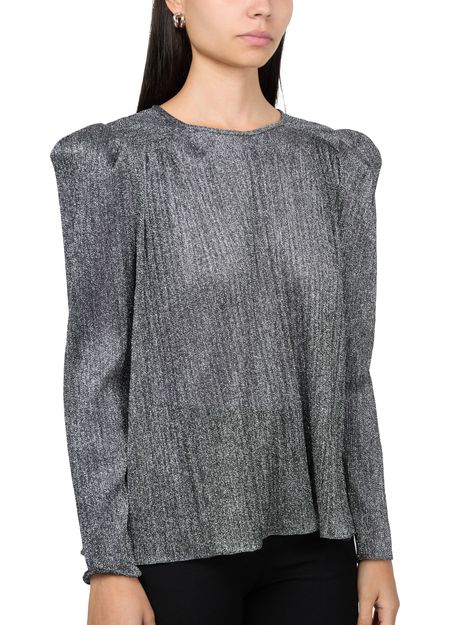 Reveal Isabel Marant's Eylia long sleeves top, crafted from iridescent material that shimmers with every move. The crew neck and long sleeves offer a classic silhouette, while the back buttoned fastening adds a touch of elegance. Perfect for pairing with both casual and formal ensembles, this top is a versatile wardrobe staple.