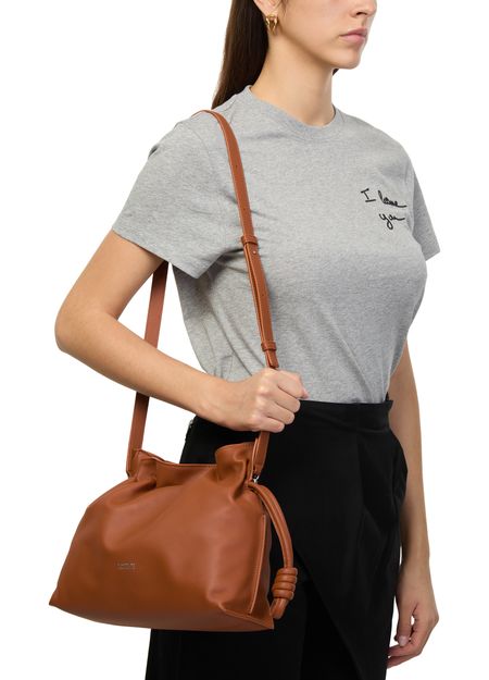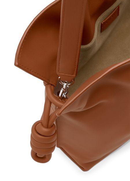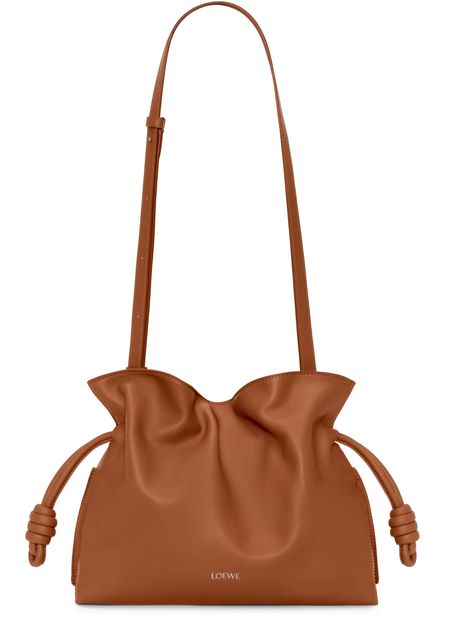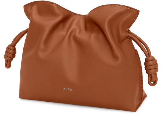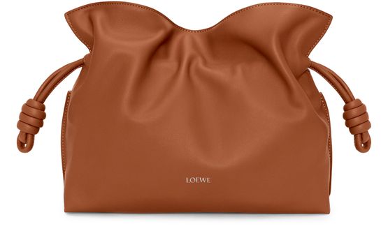Reveal Loewe's Medium Flamenco clutch in nappa calfskin, a soft and slouchy bag with a cinched closure and historical knot drawstrings. The thin, detachable strap offer versatile carrying options, while visible topstitching and a front embossed logo highlight exceptional craftsmanship.