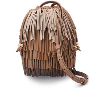 Reveal Zimmermann's fringed shoulder bag, crafted from smooth leather with a refined silhouette. The adjustable thin strap and drawstring closure offer both style and practicality, while visible topstitching and fringe details add a distinctive, modern edge to this standout accessory.