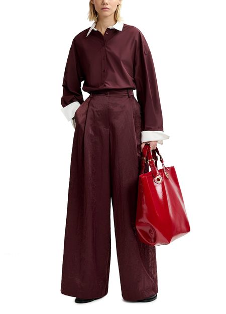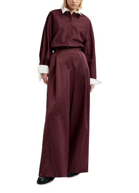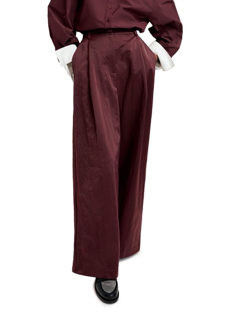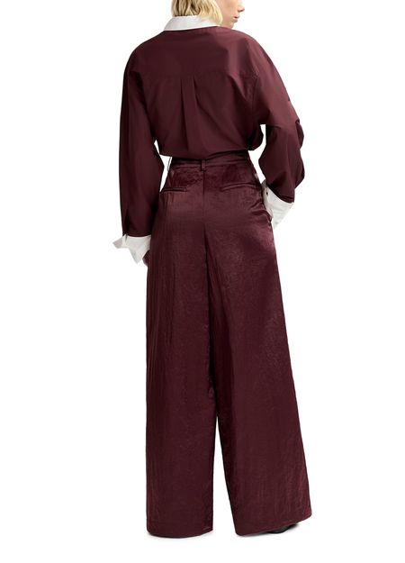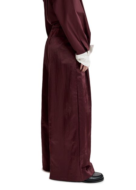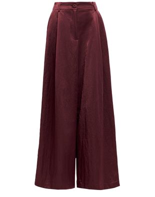 Tailored from a lustrous recycled polyamide-blend satin fabric, these pants have been smartly detailed with pleats at the waist that fall into soft folds down the pooling wide leg. The pair is finished with two welt pockets at the back, slanted front pockets, and a zip-button front closure.