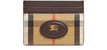 Discover Burberry's Highlands cardholder, featuring the iconic Burberry Check and Knight Design equestrian emblem. This sleek accessory offers interior slots for cards, visible topstitching, and a front logo, all crafted with meticulous attention to detail. Elevate your style with this modern yet timeless piece.