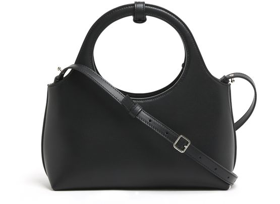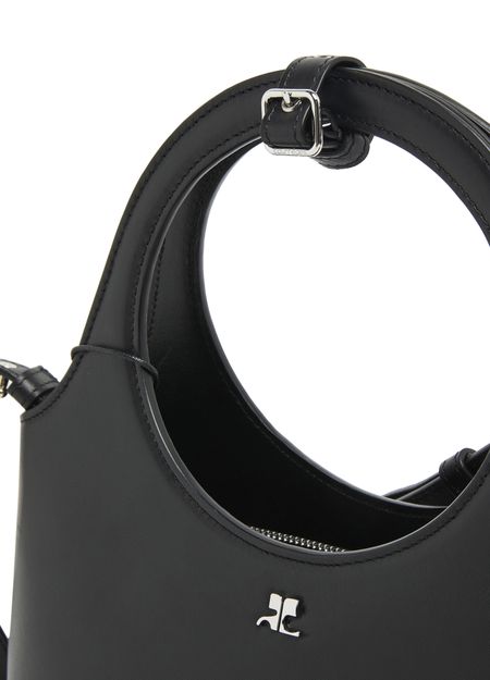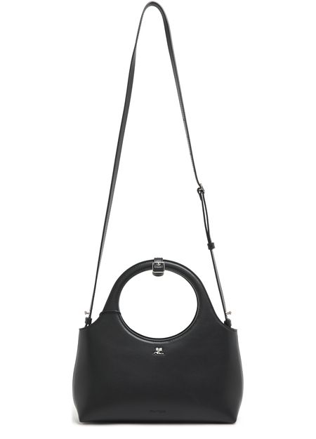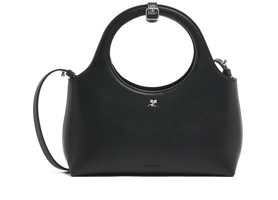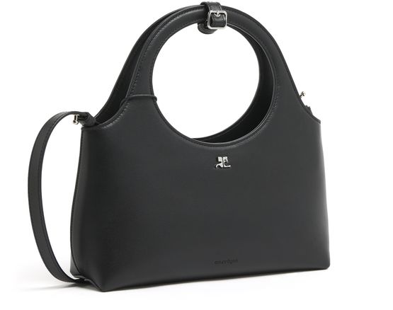 Courrèges's Holy Day handbag showcases a chic silhouette with double handles for effortless hand carrying. Its front logo gleams in silver letters, complementing the visible topstitching that adds a touch of sophistication. A thin strap offers versatility, making it the ideal accessory for any occasion, blending style with practicality.