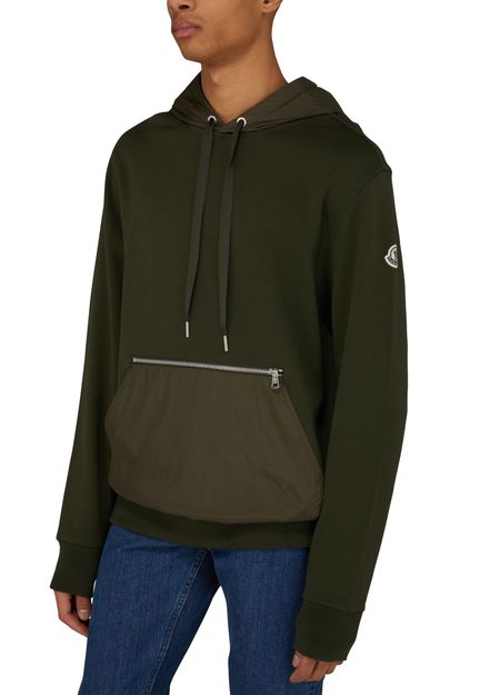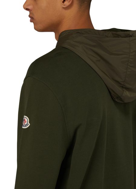 Moncler's Hoodie is crafted with a warm fabric to keep you cozy. It features a large hood, kangaroo pocket, and cuffs for added comfort. The adjustable drawstring collar allows for a customized fit. Perfect for staying stylish and comfortable during the cooler months.