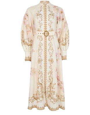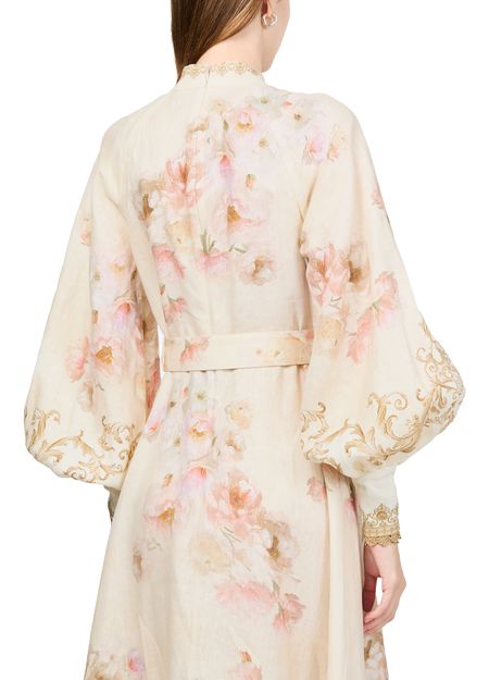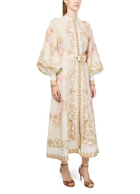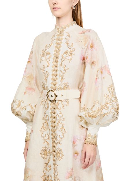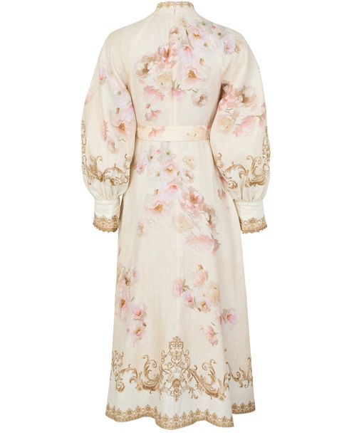 Reveal Zimmermann's floral midi dress, a masterpiece of elegance with its high-neck and gigot sleeves. The loose fit and button fastening ensure comfort, while the embroidered details and barocco print add a touch of sophistication. Perfect for any occasion, this dress is a true style statement.