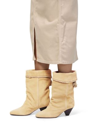 Reveal Isabel Marant's Inaya pants, crafted in a pyjama-inspired silhouette with a calf-length cut. The elasticated drawstring waist and front pleating offer effortless comfort, while side pockets and button fastening add practical flair. Elasticated ankles and belt loops complete this versatile, modern trouser for any occasion.
