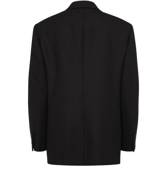 • Description : double-breasted, striped print, long-sleeved, two front pockets, welt pockets, logo at the back label.