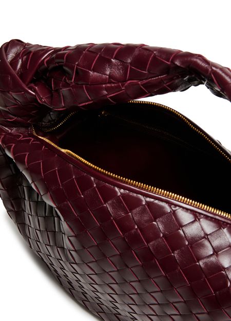 Reveal Bottega Veneta's intrecciato shoulder bag, crafted from glossed leather with a single handle for effortless sophistication. The visible stitching and metal finish highlight the brand’s signature weaving technique, while a spacious interior and zippered pocket ensure both style and practicality.