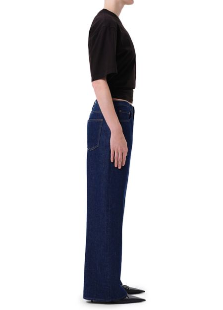 Reveal Agolde's Modern Wide-Cut Jean featuring a buttoned zipper closure and embellished buttons. With ankle-length and visible stitching, these jeans offer a chic blend of style and functionality. The five-pocket style and belt loops enhance versatility, making them perfect for both casual and formal settings.