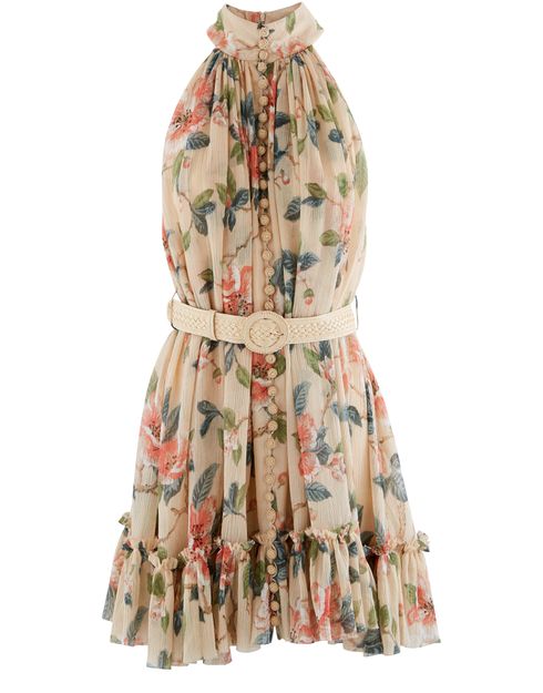 A discreet floral pattern and pleats give the short Kirra dress a lovely lightweight, natural look. This Zimmermann dress is entirely made from silk.