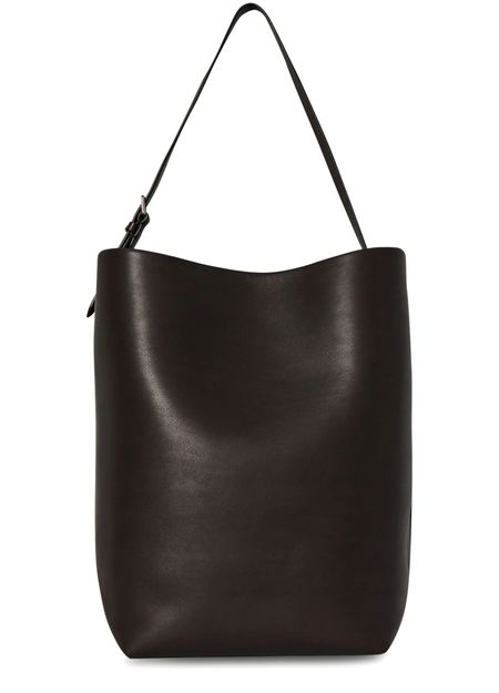 The Row N/S Belt Tote large bag is a sleek and versatile leather shoulder bag featuring a thin strap and single handle for hand carried or worn on the shoulder. The adjustable strap adds convenience, and the single compartment offers ample space for essentials. This timeless and understated piece is a must-have for any wardrobe.