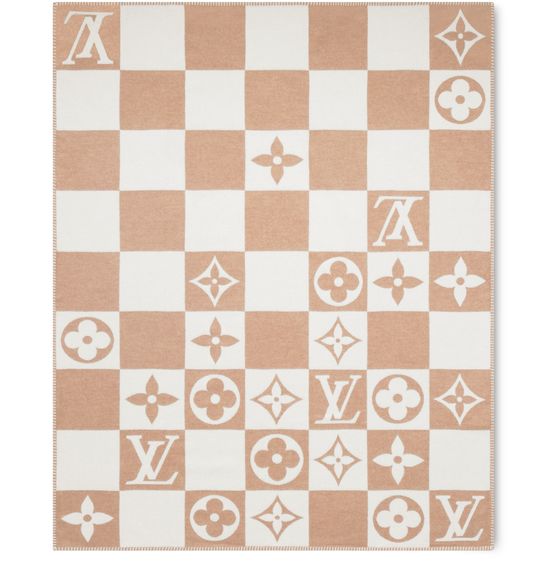 The LV Checkmate blanket is a cozy accessory with generous proportions. It features the iconic Monogram Flowers in a checkerboard design, allowing it to be folded to reveal either an eye-catching group of House icons or fewer elements for an understated effect. With its muted palette, the piece can easily be paired with a variety of interior design styles.