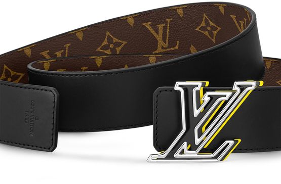 The LV Speed 40mm Reversible Belt features a dynamic signature buckle, crafted from two contrasting layers of metal in black and bright yellow. The touch of colour brings an on-trend allure to any outfit, from jeans to smart-casual looks. The Monogram canvas strap of this reverses to smooth brown calf leather for a versatile wardrobe essential.