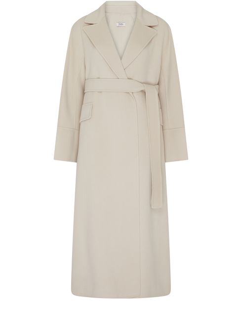 S Max Mara's Malika long belted coat is a stylish trench coat that wraps around elegantly. Featuring a notched collar and long sleeves, it includes flap pockets and side pockets for practicality. The appliquéd logo and logo at the back label add a touch of sophistication to this timeless piece.
