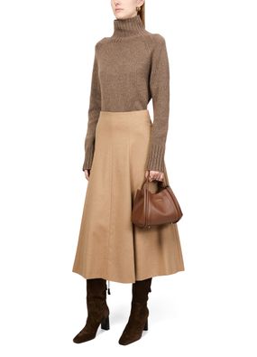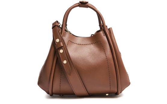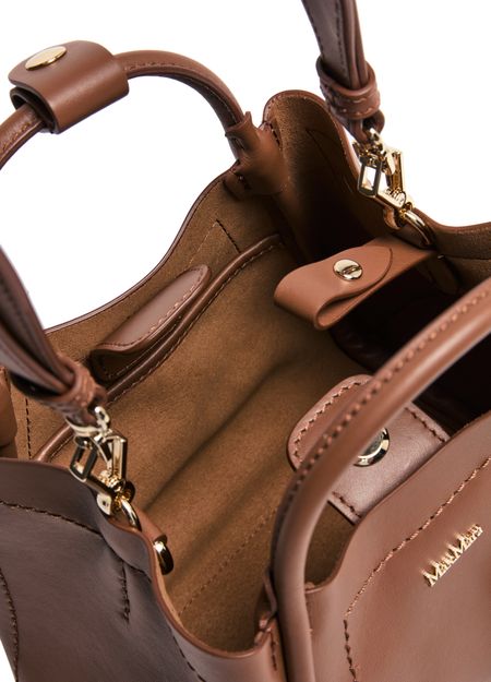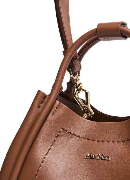 Celebrate Max Mara's Marine handbag. This sophisticated shoulder and crossbody bag features smooth leather with a sleek metallic logo on the front. Designed with double leather handles and a wide, adjustable strap, it offers versatile carrying options, perfect for any modern wardrobe.