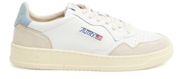 Autry's Medalist low sneakers feature a round toe, closed design, and thick outer sole. They come with a logo-printed insole and a logo at the back. The sneakers also have a logo on the tongue, printed logo, embroidered logo, and logo on the side.