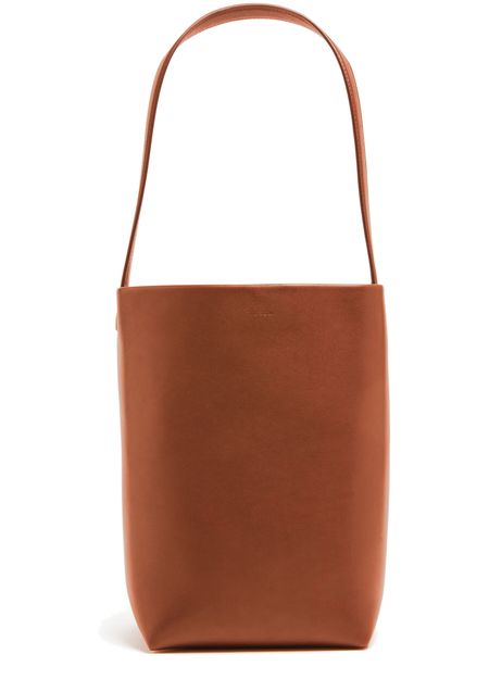 The Row's N/S Park Tote medium bag showcases a single compartment for effortless organization. Hand carried or worn on the shoulder, its thin strap offers versatility. The visible topstitching adds a touch of elegance, making this shopper tote bag an essential accessory for those who appreciate refined simplicity and functionality in everyday style.