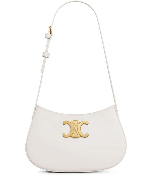 Celine's Medium Tilly bag in shiny calfskin is a luxurious companion, designed for effortless elegance. With a zipped closure and one main compartment, it offers practicality without sacrificing style. The adjustable strap allows for versatile shoulder carry, while the lambskin lining and gold finishing elevate its sophisticated allure, perfect for any occasion.
