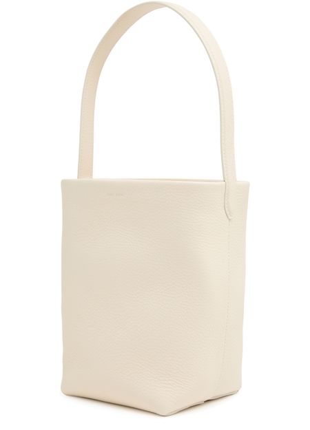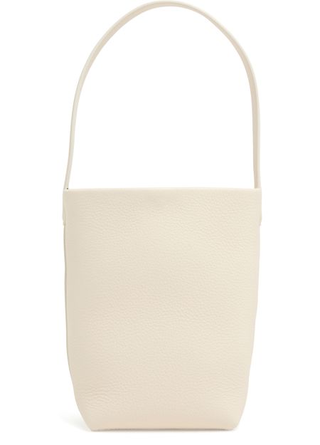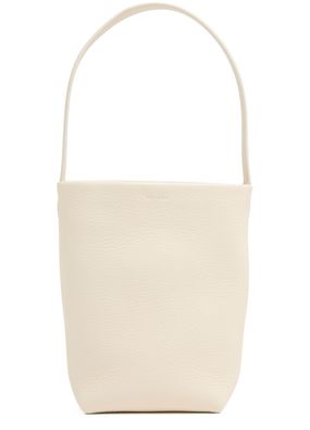 Reveal The Row's N/S Park Tote small bag, crafted from grained leather for a refined touch. The single handle and visible stitching highlight its modern silhouette, while the front engraved logo adds a signature finish. A sleek tote designed for effortless sophistication and everyday versatility.