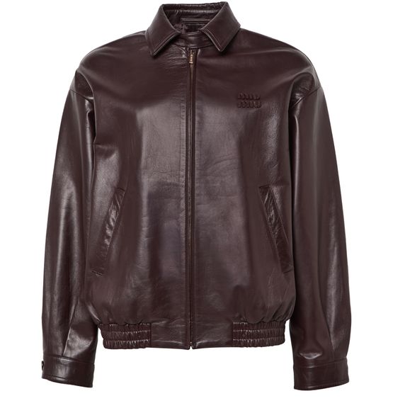 Reveal Miu Miu's nappa leather jacket, crafted from smooth leather with a sleek silhouette. The long sleeves, zipper closure, and side welt pockets offer both style and function. An embroidered chest logo adds a signature touch, making this piece perfect for elevating any modern wardrobe.