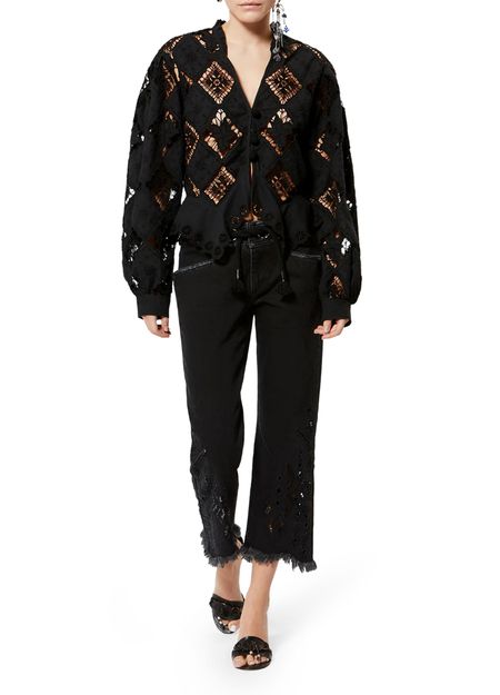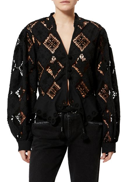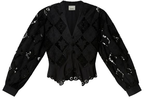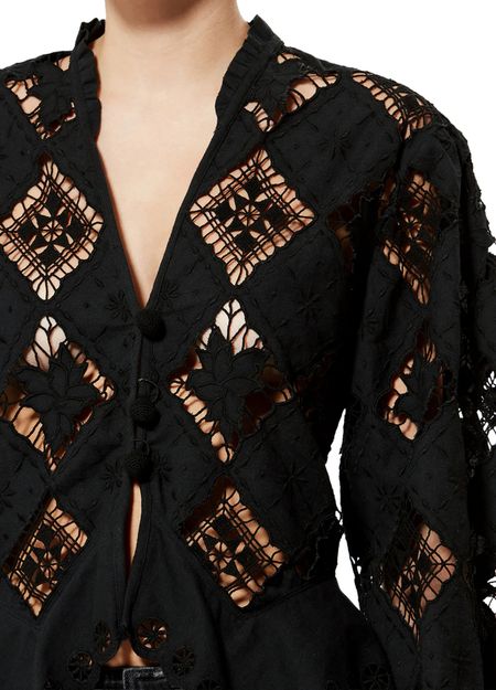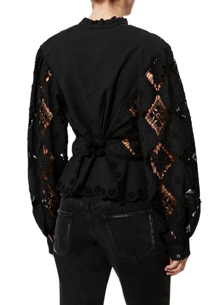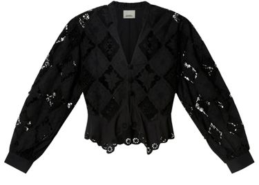 Reveal Isabel Marant's Nina long-sleeve blouse, featuring a refined V-neck and geometric details for a contemporary edge. The front buttoned closure and long sleeves create a sleek silhouette, making this top a versatile choice for both casual and elevated ensembles.