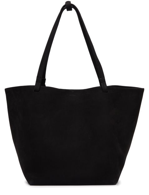 The Row's Park Tote three bag is a stylish shopper designed with a single compartment for effortless organization. Its double handles and thin strap offer versatility, allowing it to be worn on the shoulder. Visible topstitching adds a touch of sophistication, making it the perfect tote for any occasion.