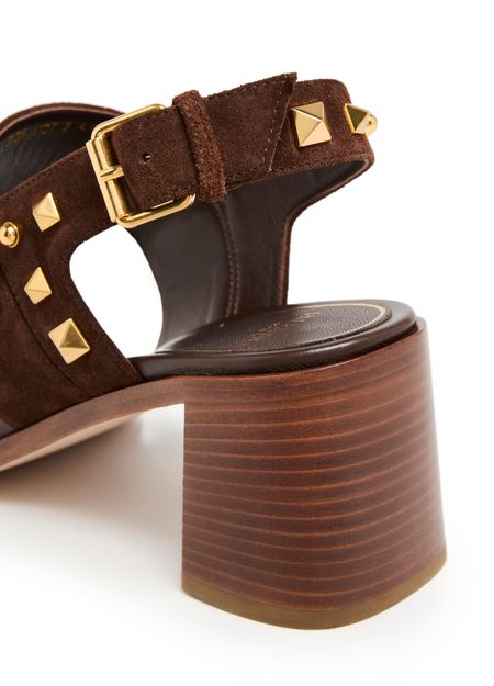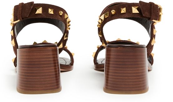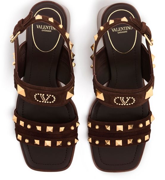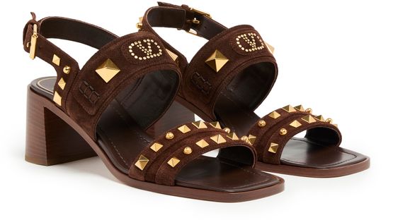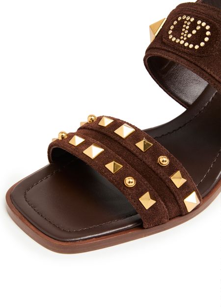 Step into elegance with Valentino's Plaster Caster heeled sandals. The wide buckled strap hugs your foot, complemented by a gold finish and visible stitching. The medium block heel offers comfort, while the open square toe adds a modern touch. Experience luxury with the logo-printed insole, perfect for any occasion.
