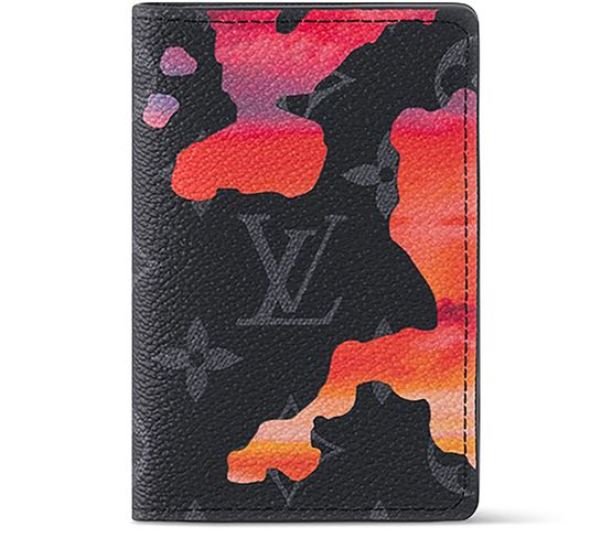 A highly practical, all-purpose wallet, Louis Vuitton’s Pocket Organizer joins the “Room with a View” collection for year’s end 2022 with a poetic new decoration on Monogram Eclipse canvas. A dreamlike sunset in vibrant shades of red and orange is dotted with clouds that subtly spell out the House’s initials for a clever signature touch.