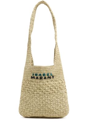 Isabel Marant's Praia shoulder bag showcases a wide strap for effortless style. Adorned with an embroidered logo and intricate details, it features a single compartment for essentials. The single handle allows it to be worn on the shoulder, making it a perfect blend of functionality and chic elegance for any occasion.
