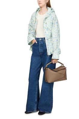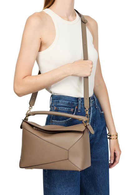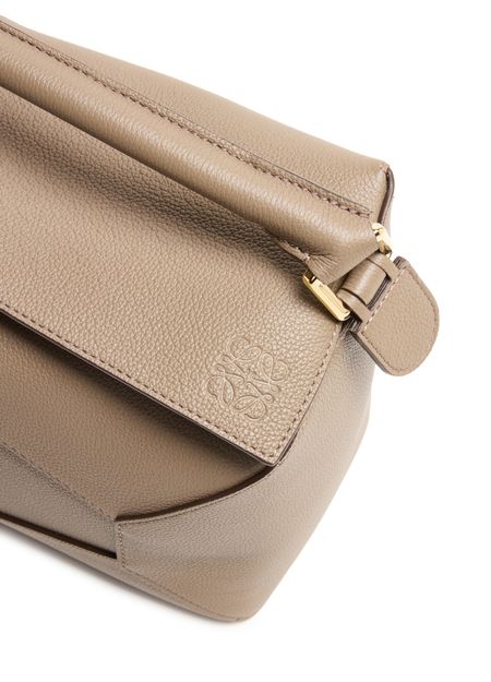 Introducing Loewe's grained leather tote, a masterpiece of modern design. This tote features a single handle and a zippered front pocket, seamlessly blending function with style. The zipper closure and visible topstitching add stylish details to this elegant accessory.