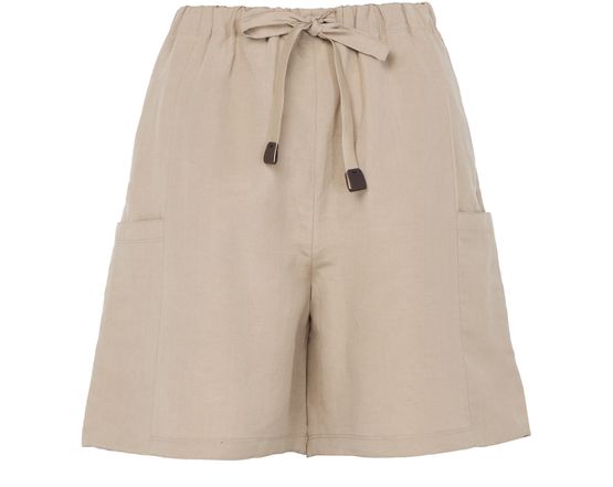 • Description : bow fastening, visible stitching, lace details, large side pockets, side pockets, short length, adjustable drawstring waist, low-waist fit.