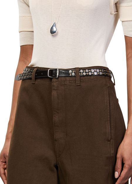 Reveal Lemaire's Rio 20 studded belt, crafted from smooth leather and finished with silver-tone hardware. The adjustable clasp ensures a perfect fit, while its refined design makes it ideal for accentuating the waist. This versatile piece elevates both casual and sophisticated ensembles effortlessly.