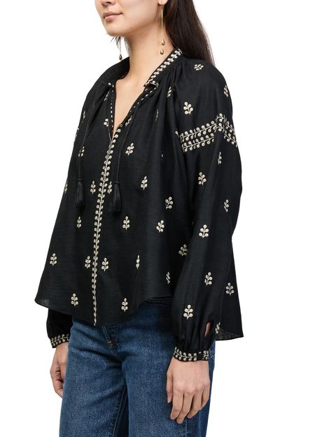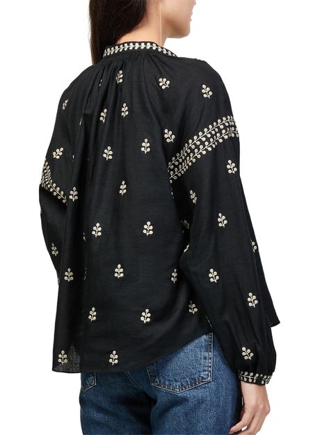 Reveal Isabel Marant's Rodis blouse, a refined top featuring a V-neck and long sleeves. Delicate floral embroidery adds a sophisticated touch, while the elegant silhouette ensures effortless pairing with tailored pants or skirts for both day and evening occasions.